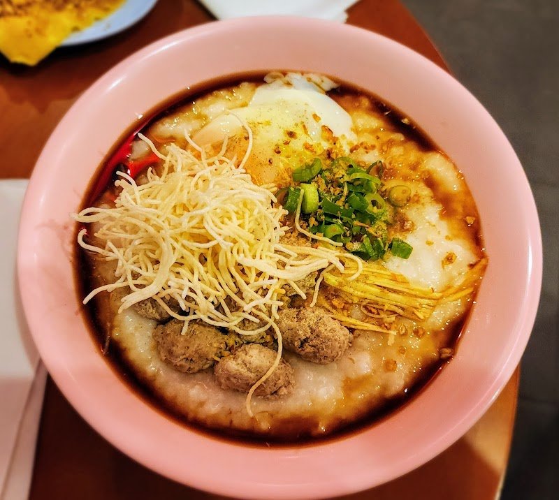 One of those places that looks simple but delivers big on flavour, comfort, and atmosphere. Small but lively space, red lanterns overhead, busy kitchen, and a steady buzz that makes it easy to settle in and stay a while. We came mainly for the congee and noodles and they absolutely delivered. The beef noodle soup was excellent. Clear but deeply savoury broth, generous portions of beef including brisket and tendon, soft beef balls, and plenty of greens. The beef was tender, the soup was aromati