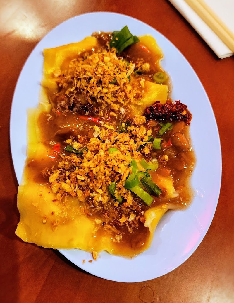 One of those places that looks simple but delivers big on flavour, comfort, and atmosphere. Small but lively space, red lanterns overhead, busy kitchen, and a steady buzz that makes it easy to settle in and stay a while. We came mainly for the congee and noodles and they absolutely delivered. The beef noodle soup was excellent. Clear but deeply savoury broth, generous portions of beef including brisket and tendon, soft beef balls, and plenty of greens. The beef was tender, the soup was aromatic without being overpowering, and everything tasted carefully cooked rather than rushed. The congee style bowls were another standout. Thick, smooth rice base topped with minced pork, liver, crispy fried shallots, spring onion, and soy. Comforting, filling, and perfect if you want something warm and soothing. It is the kind of bowl you keep spooning without thinking. The rice noodle rolls with peanut sauce were a surprise highlight. Soft, silky sheets drenched in a savoury, nutty sauce, finished with fried garlic and spring onion, with chilli on the side. Simple, rich, and very moreish. One plate disappears quickly. The cold noodle style dish with herbs, peanuts, crispy bits, and light chilli dressing was fresh and well balanced. Fragrant, slightly spicy, and great in between heavier bowls. The mix of textures works really well. Chilli is a must here. Fragrant rather than aggressively spicy, it adds another layer without overwhelming the broth. Despite how busy it gets, service is efficient and friendly. Seating is close and tables are tight, but it still works well as a long sit and catch up spot. Food comes out consistently and the pace feels relaxed rather than hurried.