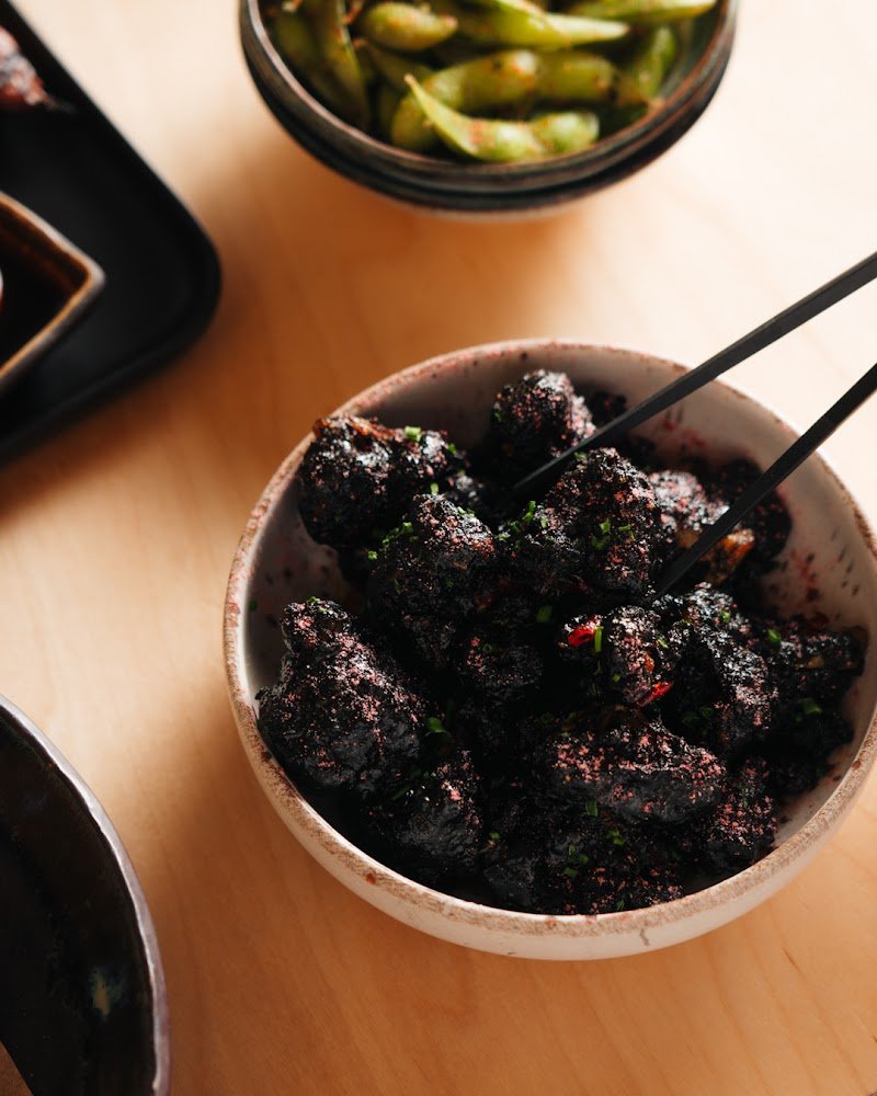 Delicious food and attentive service, we had a newer staff member serving us who was very considerate and quick on her feet. We had the Kingfish Sashimi, Charcoal Cauliflower, Yellowfin Tuna Yakitori, Roasted Pumpkin Kabocha. Charcoal Cauliflower is a must have, delicious, crunchy and saucy. The pumpkin also had an unexpectedly creamy and rich flavour. We had dessert after with the Blood Orange Sorbet of the day and Tofu Doughnuts, both great choices. The Tuna Yakitori was slightly coarser than I thought it would be, it was like I was eating pork, and it didn't taste entirely fresh like the sashimi did. Perhaps I'm not entirely used to eating that fish grilled? Otherwise everything else was amazing. We arrived at 5.30pm and was served promptly for each dish, the ambience was fun but the sound control was perfect. Lovely venue and would go back for the cauliflower for sure.