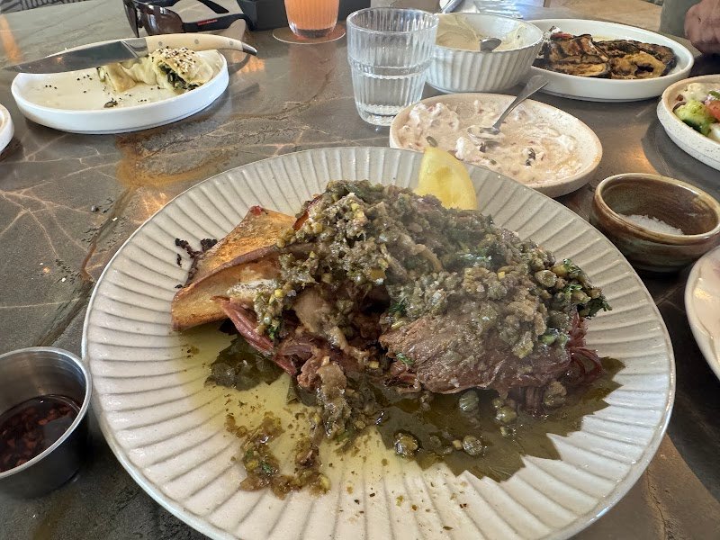 The new bondi addition! Previously the Promonade restaurant which has been turned into a dimly lit Greek with a great vibe and a superb menu. As always we order too much as the menu is extensive and all delicious. Saganaki, Greek salad, taramsalata and fresh warm pita. We could have stopped there! The fish was superb as was the generous portion of lamb. Potato fries crispy and lovely. Worth the money and the visit.