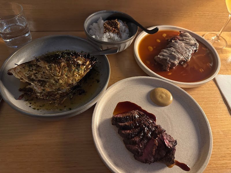 10/10 - service, food and atmosphere! We ordered the kingfish sashimi, pork belly, market fish, octopus skewers, wagyu flank, rice, butter lettuce and hojicha mousse for dessert. We drank the blueberry whisky sour and the pineapple sour - delicious. Huge shout out to THE GUY ON THE HIBACHI - BRO KNOWS WHAT HE IS DOING ๐ฅ. We canโt wait to visit again! Also can I get a plate of the mochi in Beurre Blanc sauce PLS.