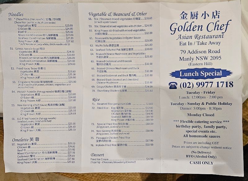 Golden Chef Asian Cuisine offers authentic Chinese dishes in the heart of Manly, NSW. Enjoy a memorable dining experience with dine-in or takeout options, and secure your table by making a reservation.