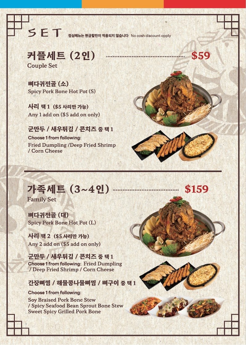 The pork was tender, portion was generous. Their prawn and chive pancake was to die for. Their staff were all friendly and attentive. Spicy pork bone stew was not too spicy that I could have it without drinking water.