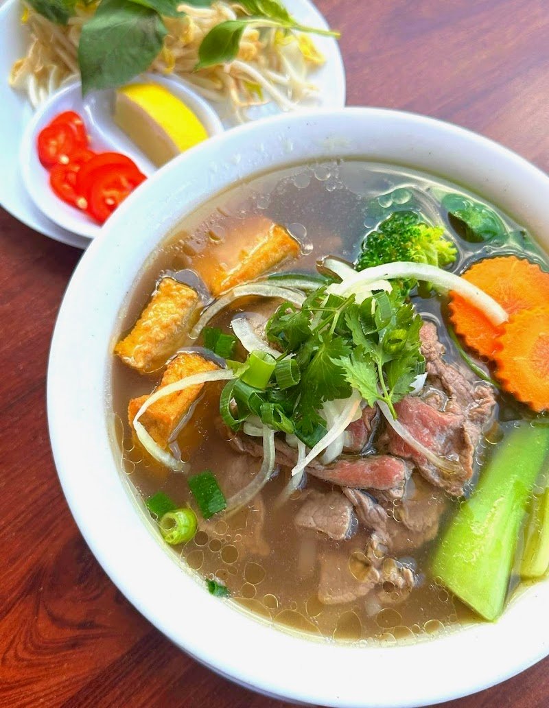 Best vegan bahn mi I’ve ever had! The tofu is very “meaty” and well seasoned. The serving is large. The bread was perfectly crunchy. Almost a bit too spicy for me, but it was a nice kick. The venue is small but there are seats and tables. Kind staff. Will be coming back without a doubt! Accommodated us last minute on a very busy night. I chose the pho and asked for it without onion which made it a bit tasteless if I’m honest. (My onion allergy is usually only if I eat it raw…. I should’ve gotten