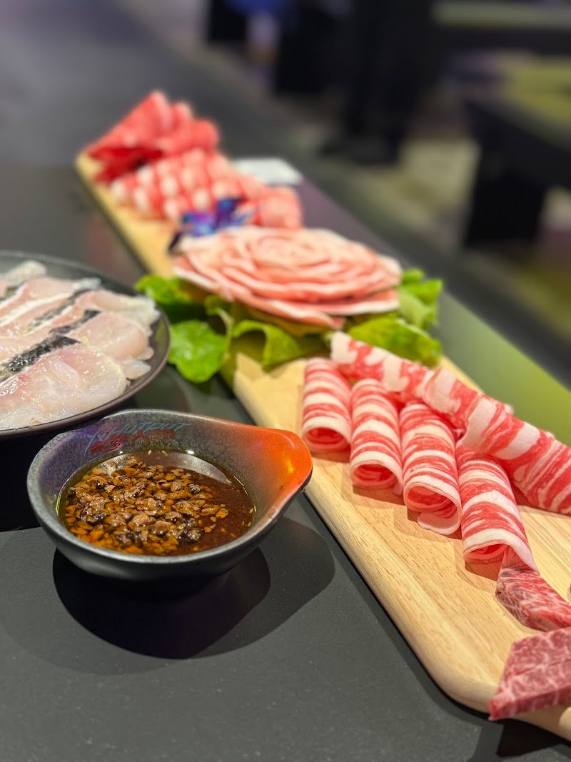 YX Hot Pot is hot pot turned into a full experience. We ordered a pork bone soup which it was really strong flavour & on the another side was a tomato beef braised soup which wasn't that strong enough of the tomato flavour. However, we asked for more a tomato paste to add-on & it was better. The meat was high-quality and fresh. Sauce was $4.90 per person which is cheaper than other brands. The cyberpunk-style interior is eye-catching and makes it perfect for a group night out. For the price, I felt like it's normal Chinese hotpot price but totally cheaper than a "H" brand. Overall, the atmosphere was pretty cool and quality of the food was great. Definitely one of the most memorable hot pot spots in the CBD.