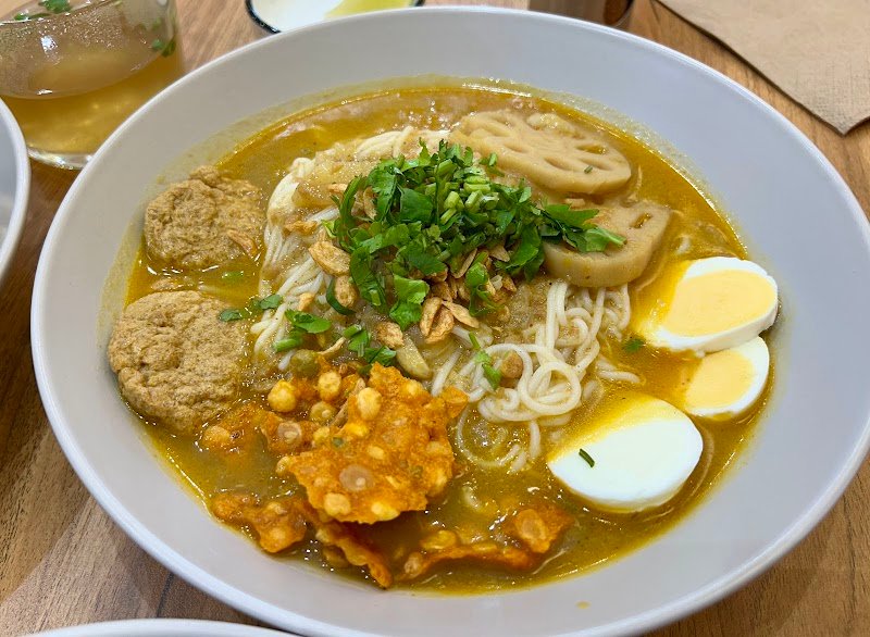 Iโve been here four times, drawn in as I havenโt had any Burmese before. First time was for shokupan toast (more modern Asian than Burmese) for arvo tea. Second was lunch with a friend who wanted to try Burmese food and third was dinner with a different friend (who also wanted to try Burmese food). The last time I brought my mother - and she enjoyed the food too. I havenโt disliked anything so far that Iโve eaten, even if some items definitely stood out to me more. The tofu noodle was surprisingly delicious โ the creamy sauce is basically savoury tofu gravy with the texture of bechamel! I really liked the crunchy tea leaf salad, though it had basically very few greens. Highly recommended for something different. Coconut cake was yum. Thereโs a few more items Iโd like to try, but they were sold out each time I went previously so goes to show, theyโre probably good too. My sole issue was that I had to request table water every time because it wasnโt given automatically, and they forgot to bring utensils and/or napkins twice. I donโt think it was deliberate, itโs still a very new cafe and I can tell theyโre still working out the kinks but it was pretty annoying.