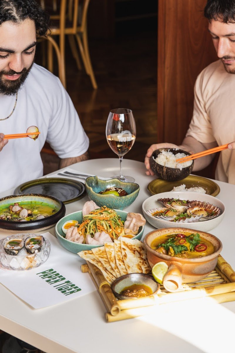 Paper Tiger came as a recommendation and it did not disappoint. Luckily our group of 7 happened to time our impromptu visit well and we were able to fit onto the one remaining table. None of the group had dined at Paper Tiger before. We opted for the โfeed meโ and our request that dessert be replaced with the beef tartare was kindly accommodated. Every single dish was a stand out: perfectly cooked, balanced and seasoned and with well-considered flavour profiles. With every first bite came exclamations of deliciousness and enjoyment and how we all must definitely come again. The shellfish were plump and delicate, the meats melt in the mouth. The chicken wings out of this world crispy, yet tender. Every bite was a symphony. Our courses of our meal were served at the perfect pace. Our servers were attentive, but not intrusive. We will all be back and be recommending Paper Tiger to all our friends.