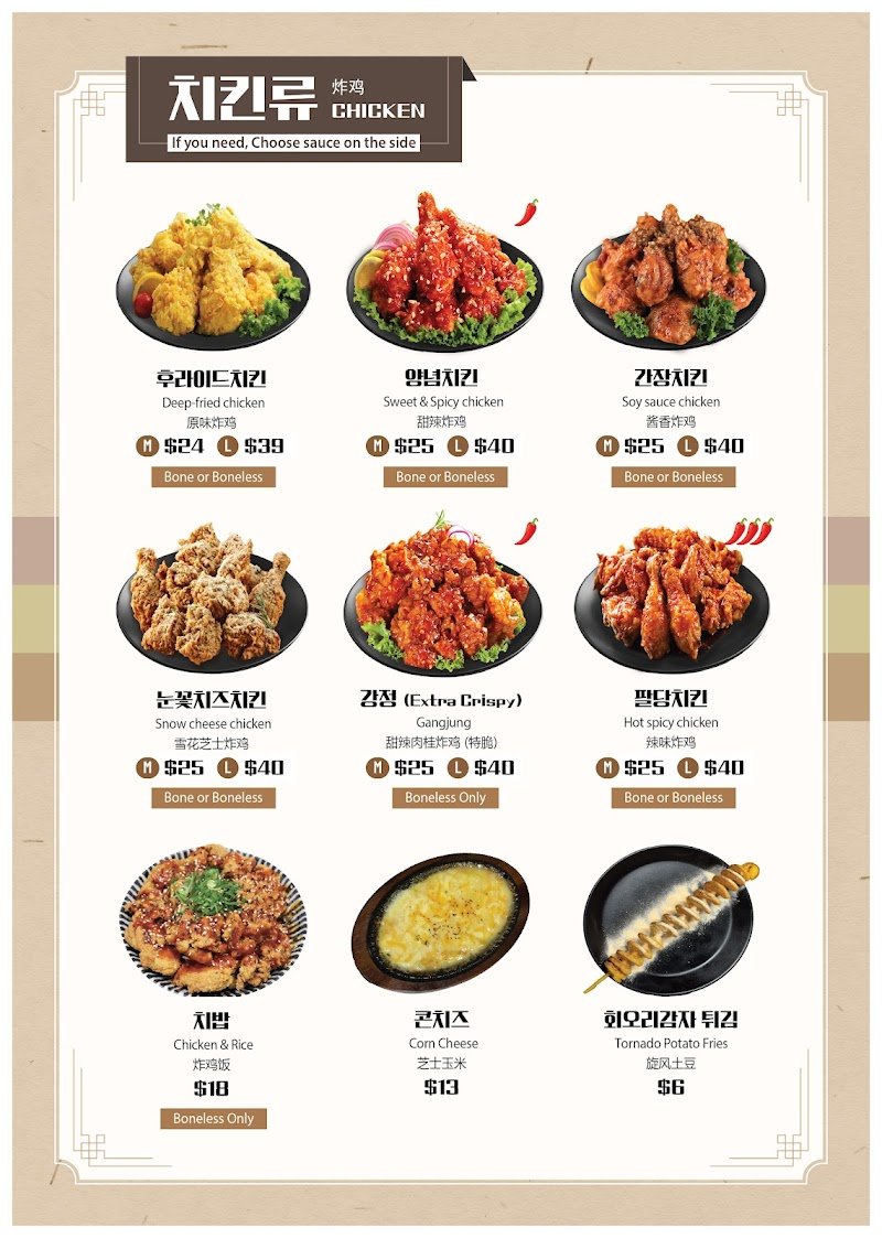 Overall a good experience. Decent value for money as it was โjustโ $75 for 3 dishes. I ordered the snow cheese fried chicken, clear broth beef soup (Ba Ku Teh) and a beef patty dish. The amount of the โfreeโ side dishes was a pleasant surprise. Overall this couldโve fed easily 3 people. Maybe 4? But at least 3 comfortably. There was zero wait time as they have quite a bit do seating inside. Service was quick and staff was friendly. Only minor caveat is that I suspect that this isnโt an โauthenticโ Korean restaurant. ๐คทโโ๏ธ
