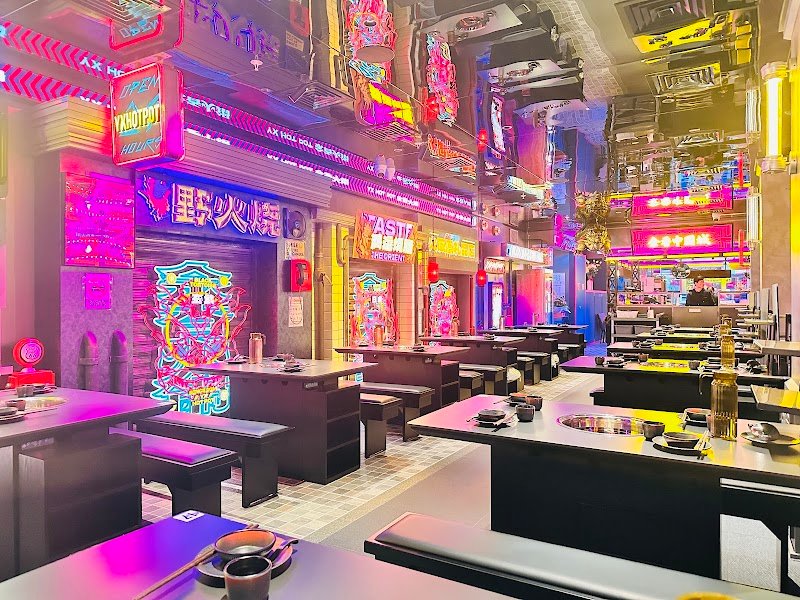 YX Hot Pot is hot pot turned into a full experience. We ordered a pork bone soup which it was really strong flavour & on the another side was a tomato beef braised soup which wasn't that strong enough of the tomato flavour. However, we asked for more a tomato paste to add-on & it was better. The meat was high-quality and fresh. Sauce was $4.90 per person which is cheaper than other brands. The cyberpunk-style interior is eye-catching and makes it perfect for a group night out. For the price, I felt like it's normal Chinese hotpot price but totally cheaper than a "H" brand. Overall, the atmosphere was pretty cool and quality of the food was great. Definitely one of the most memorable hot pot spots in the CBD.